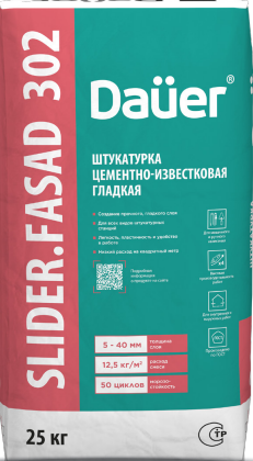Штукатурка цементно-известковая гладкая SLIDER.FASAD 302 КП II Dauer 25 кг