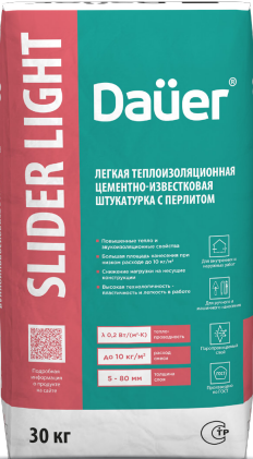 Штукатурка цементно-известковая легкая теплоизоляционная с перлитом SLIDER LIGHT Dauer КП II, 30 кг