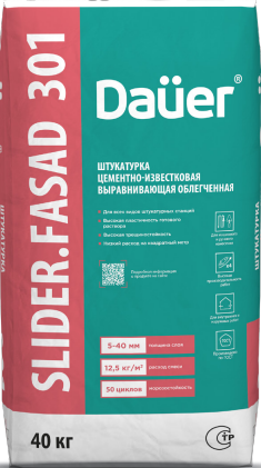 Штукатурка цементно-известковая выравнивающая облегченная SLIDER FASAD 301 класс прочности КП II Dauer 40 кг