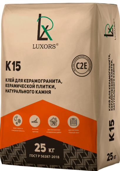 Клей для керамогранита и натурального камня К15 1,5 МПа С-2-Е LUXORS ,25 кг
