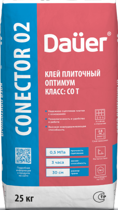 Клей плиточный Оптимум CONECTOR 02 серый 0,5 МПа С0 Т Dauer , 25 кг
