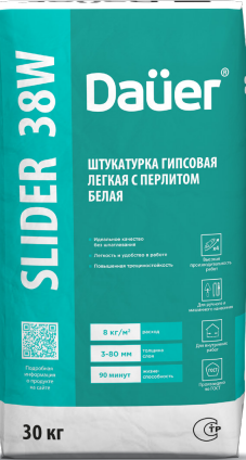 Перлитовая штукатурка гипсовая для ручного и машинного нанесения лёгкая с перлитом белая SLIDER 38, класс 90/2,0, Dauer 30 кг