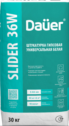 Штукатурка гипсовая универсальная белая SLIDER 36W, класс 90/2,0, Dauer 30 кг