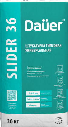 Штукатурка гипсовая универсальная серая SLIDER 36, класс 90/2,0, Dauer 30 кг